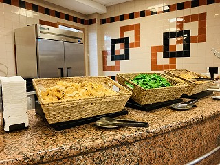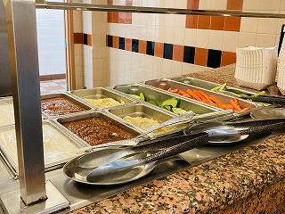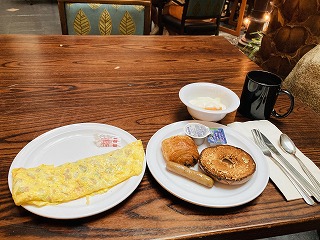 パンもベーグルからいろいろな種類があり、マフィンなどのパティストリーも豊富で、フルーツ、パンケーキ、オートミール、シリアル、ヨーグルト、フライドポテト、ソーセージにベーコンと、一通りアメリカンな朝食が揃っています。