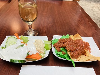 毎晩17:00 - 18:30の間に、無料のアルコール飲料(ワイン、ビール、ジンなど)とチップスとフィンガーフードの生野菜がいただけます♪